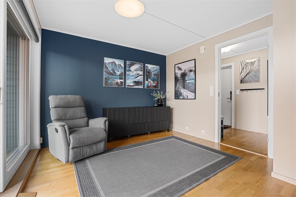 Velkommen til Eidshaven 17!Leiligheten har en innbydende entré med god plass til garderobeløsning og oppbevaring. Videre åpner boligen seg opp i en romslig stue med åpen løsning mot kjøkken, som gir et sosialt og luftig oppholdsrom. Store vindusflater sørger for rikelig med naturlig lys, og sammen med delikate fargevalg skapes en behagelig og moderne atmosfære. Mellom stue og kjøkken er det installert gasspeis som gir både varme og ekstra hygge.