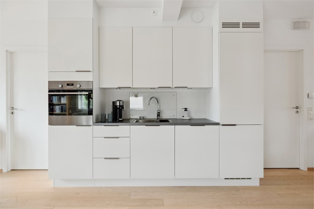 Kjøkkeninnredningen fremstår i god stand, med fronter byttet i 2025. Integrerte hvitevarer. Det er installert komfyrvakt og lekkasjesensor. Boligen har vannbåren gulvvarme i gang, stue/kjøkken og begge bad. Balansert ventilasjonsanlegg med tilluft og avtrekk gir et godt inneklima. Vann- og avløpsrør er av moderne type (rør-i-rør og plast), og varmtvann leveres via felles anlegg.