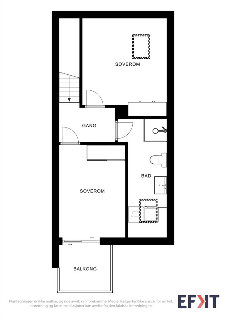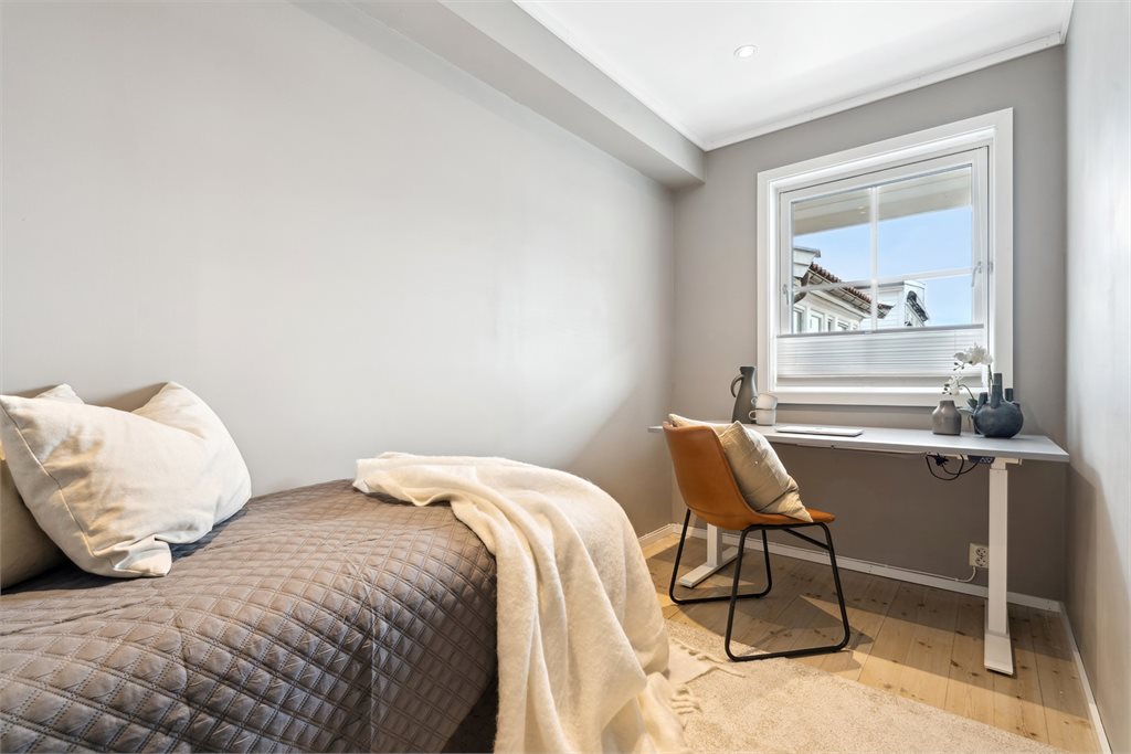 Her finner du to gode soverom med god plass til dobbeltseng og garderobeskap Obs: Soverom 3 er ikke godkjent hos kommunen, de pkt. ferdigattest). Hovedsoverommet har egen utgang til balkong med utsikt over fellesarealene inn mot bakgård.