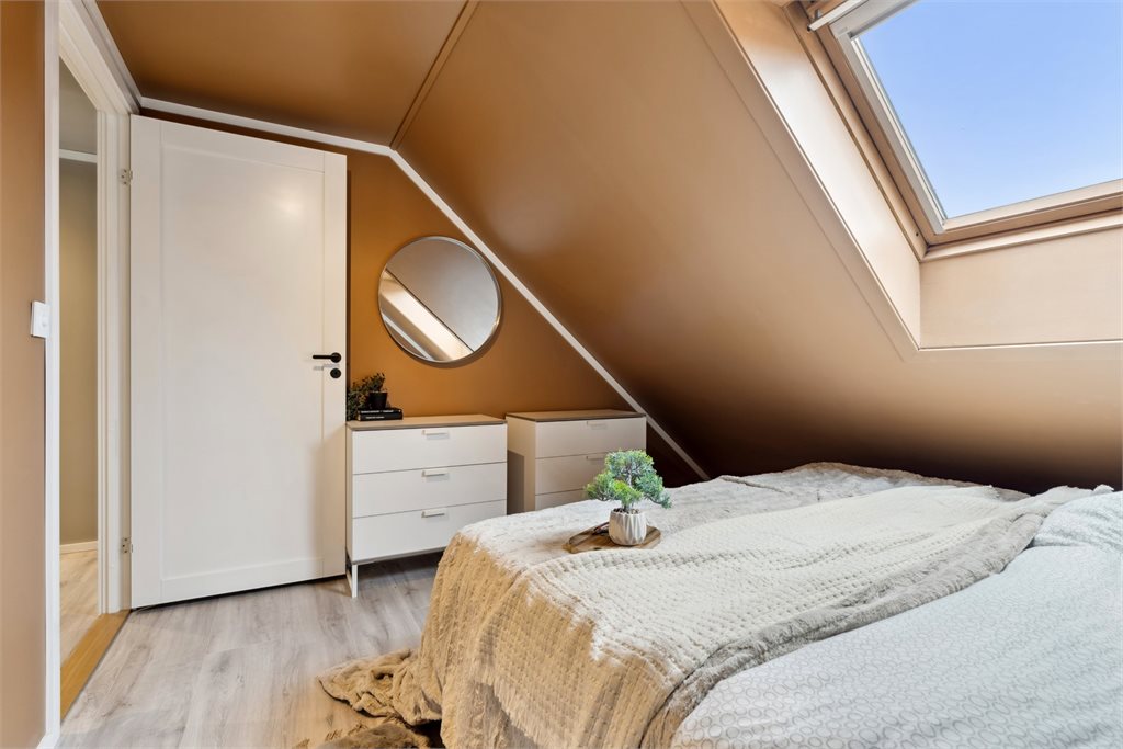 Soverom 3 (med skråtak er opprinnelig loft/tegnet som åpen messanin ned til etasjen under fra tegninger i datert 1982. Dog er det nye tegnigner fra 2008 som viser etablert soverom. Selger har utvidet soverommet og etablert velux-vindu. Megler tolker dette dit at boligen har tre soverom.