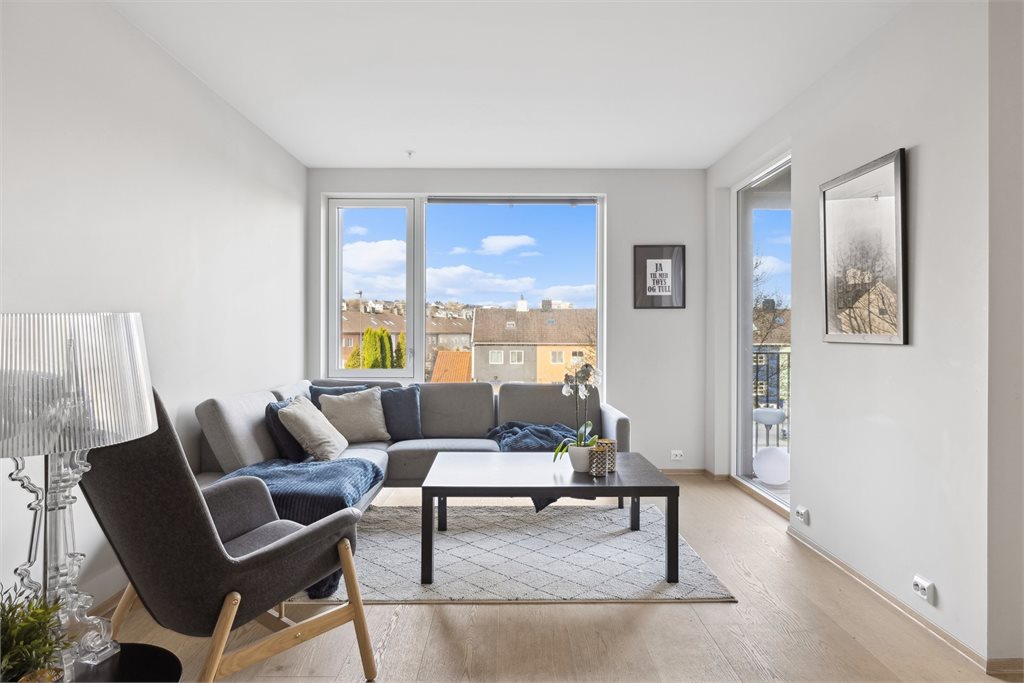 Leiligheten byr på lyse oppholdsrom og flere vindusflater som spiller inn naturlig lys. Det er vannbåren varme i gulvet på badet, stue/kjøkken og gang.