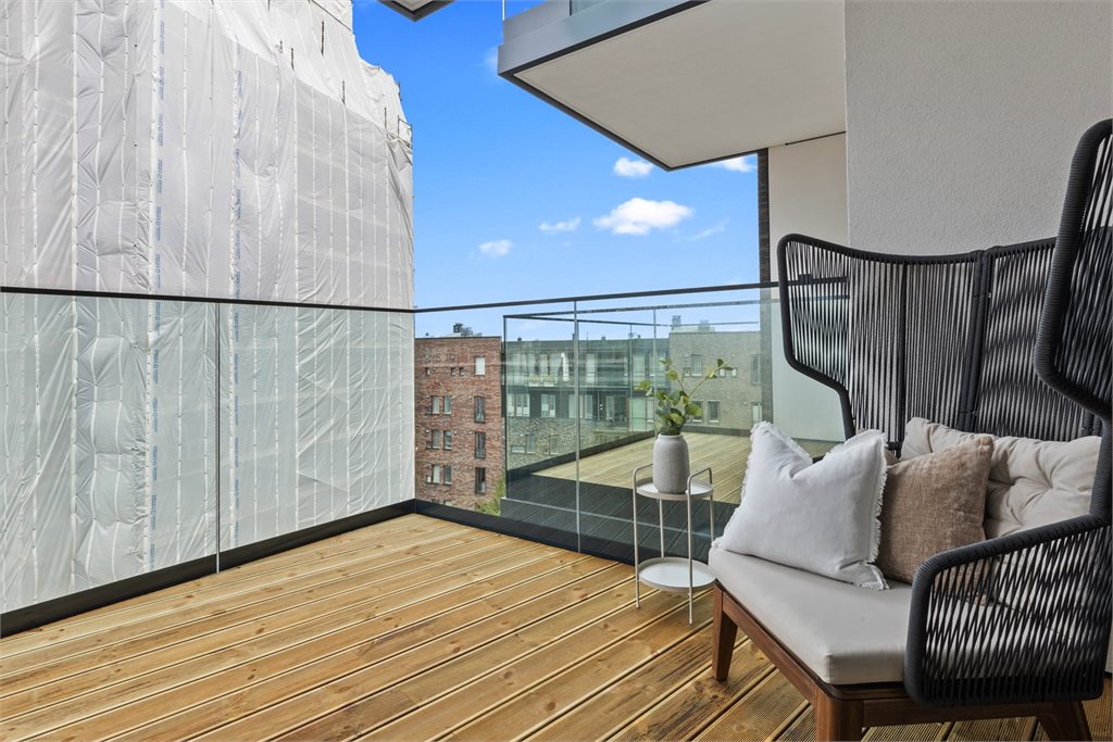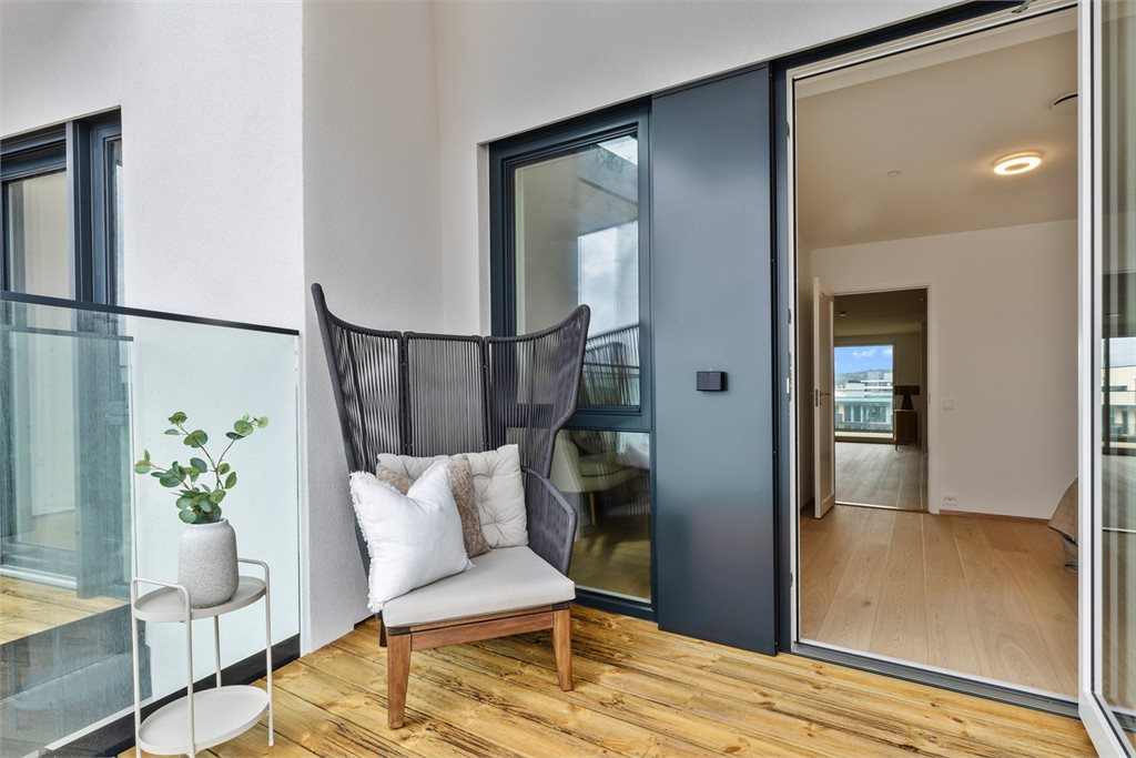 Stue og kjøkken er i en åpen og sosial løsning, med store vindusflater som gir godt lysinnslipp. Fra stuen er det utgang til en stor, solrik balkong – perfekt for å nyte late dager med grill, utemøbler og hyggelige sammenkomster.